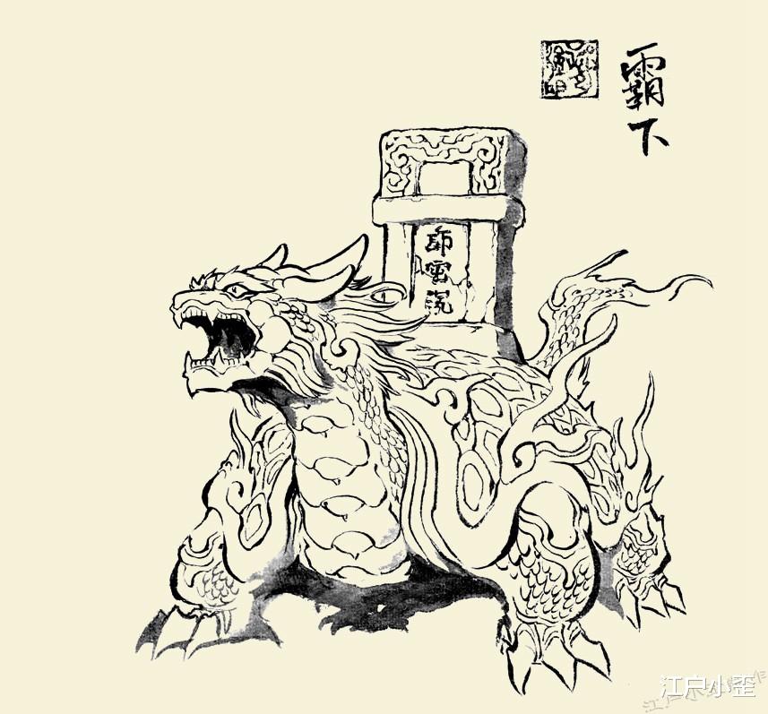 下回出门看到石碑别说不认识他们,霸下和负屃,一个在下,一个在上。