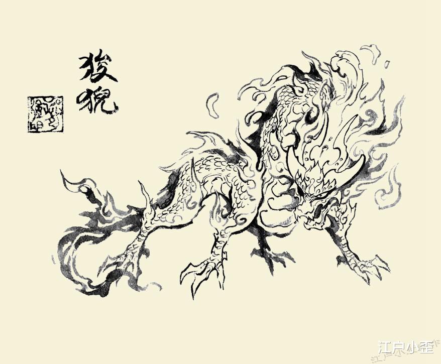 龙与豺狼结合,生了睚眦,睚眦具备战斗精神,喜欢厮杀。
