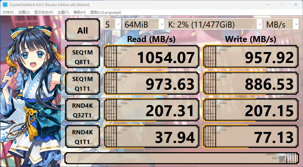 2、CrystalDiskMark读写测试