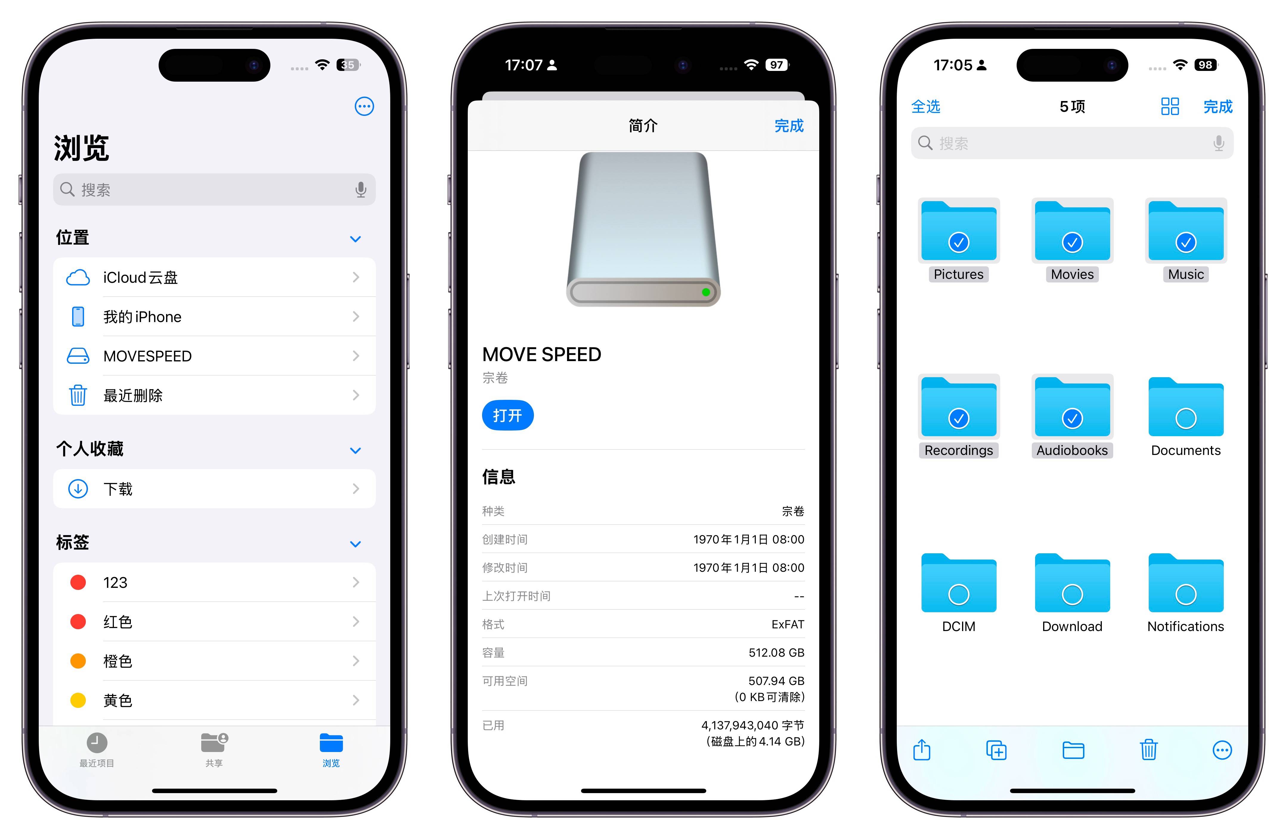 在苹果手机端,外挂硬盘的内容管理十分便捷,用户可直接通过 “文件” 应用访问 U 盘存储内容,无需安装额外软件,即可轻松完成 复制、剪切、粘贴、移动 等操作。同时,该 U 盘可在 iPad、Mac 等设备上无缝读取,适用于 视频剪辑、图片处理、文档管理,极大提升工作与创作效率。