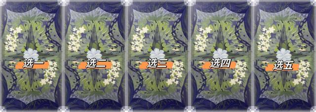 规则:保持内心安静的状态,在心中想着要算的人,并且默念“他是自己的正缘么?他爱自己么?”从下面五张牌中凭感觉选出一张来,切记不可刻意选择,选好后下翻查看答案。