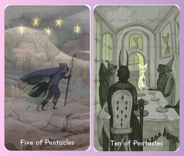 分析:两张都是星币牌,还有一张比较艰苦的星币五,其实很直接的表达了,这段关系,与其说是正缘,不如说是落地适合。但是就像星币五牌面上干涸的大地和环境那样,如果你真的选择了他走下去,可能日后的生活会是让你觉得枯燥乏味的,又或者要走到结婚比较辛苦比较难,是需要你们一起坚持和努力的。因此,是否选择,就看你啦。