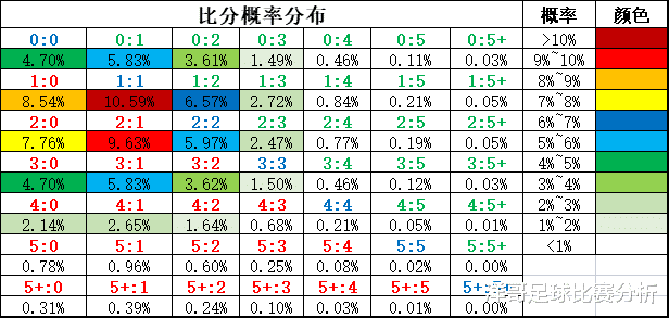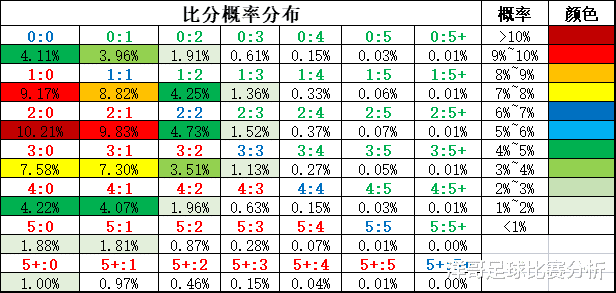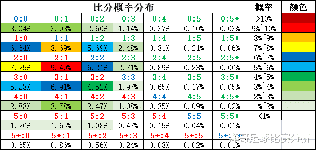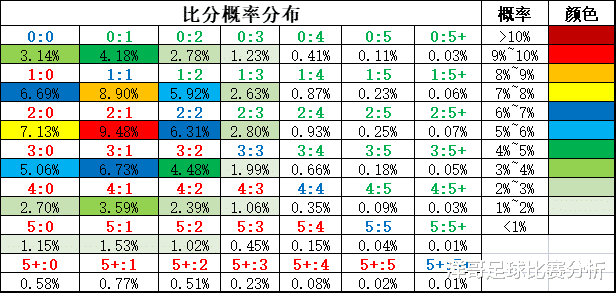 综合分析,本场主不败概率较大;总进球方面本场小球(012球)概率43.45%,大球(3球及以上)概率56.55%;比分方面,1:1、2:1、1:0概率较大。