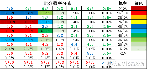 根据近20场技术统计,主队主场场均进球1个,场均失球1.6个;客队客场场均进球1个,场均失球2.3个。根据模型测算,本场主队进球数、客队进球数及总进球数的概率见下表: