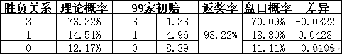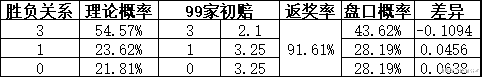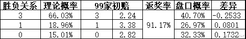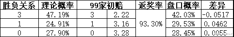 最终,经过模型推算得出的胜平负概率以及根据机构开盘数据计算的胜平负概率见下表: