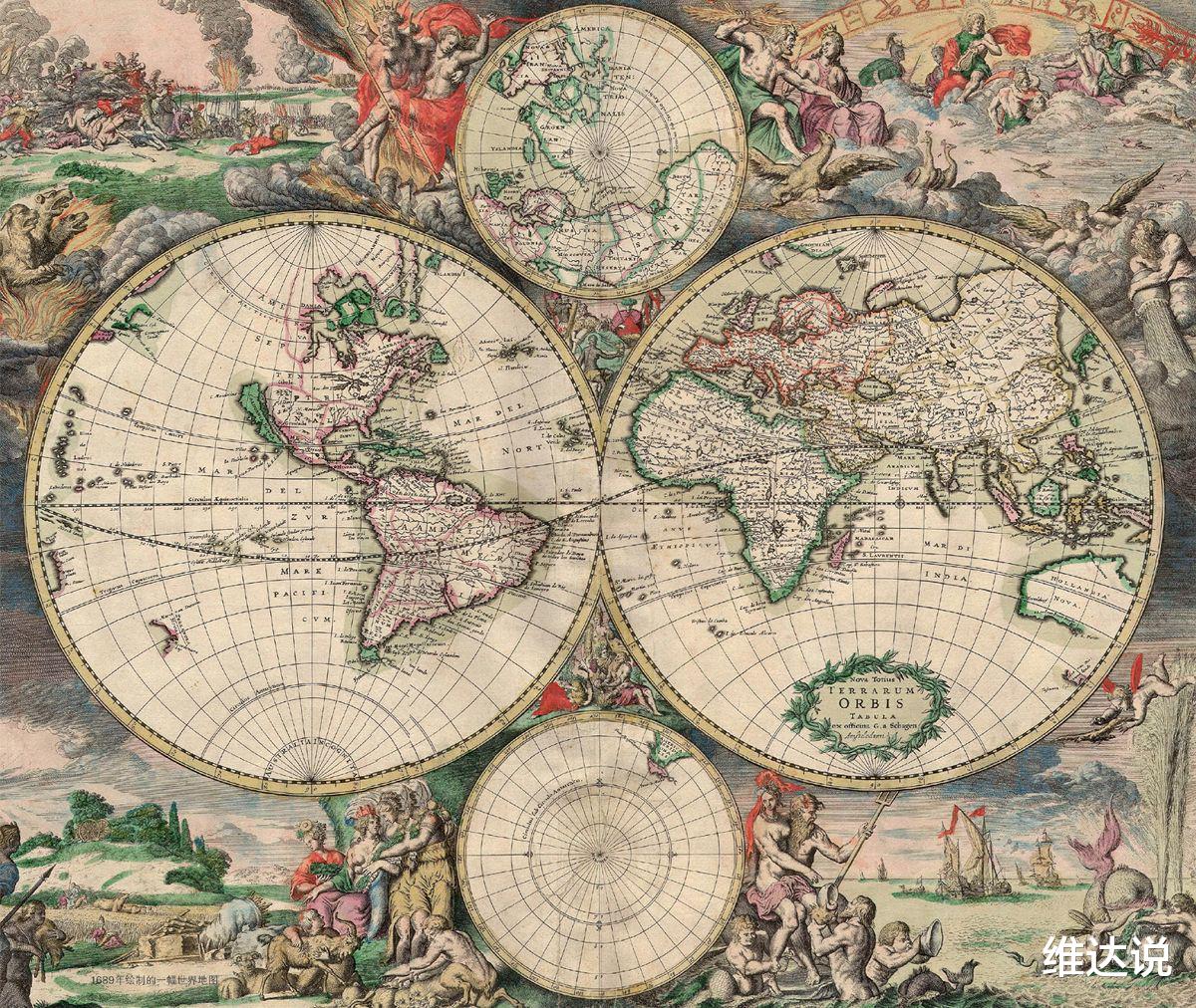 欧洲在1689年绘制的世界地图,当时是清朝康熙二十八年。