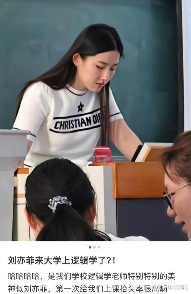 4月18日,一位网友在某社交平台发布贴文:"我们学校的逻辑学老师,也太像刘亦菲了吧!"并附上多张课堂照片。照片中,这位老师一头黑长直发,皮肤白皙,五官立体,尤其是标志性的"驼峰鼻",几乎和刘亦菲如出一辙。