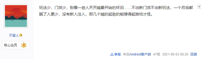 理想很美好,现实却很残酷。因为玩家群体差异性的关系,《剑网3》怀旧服并没有像众人期待那样“爆火”,一开服就遭遇寒流。开服当日,除了一两个所谓的“人气服”,其他服务器都没几个玩家入驻,整个服务器冷冷清清,常年在线只有几十个活人,有玩家组队一个多小时,连一个副本任务的人数都没凑齐。而即便是“人气服”,也没有出现排队等现象,热度明显不足,靠这样的热度来“搬砖”,显然有些痴人说梦。