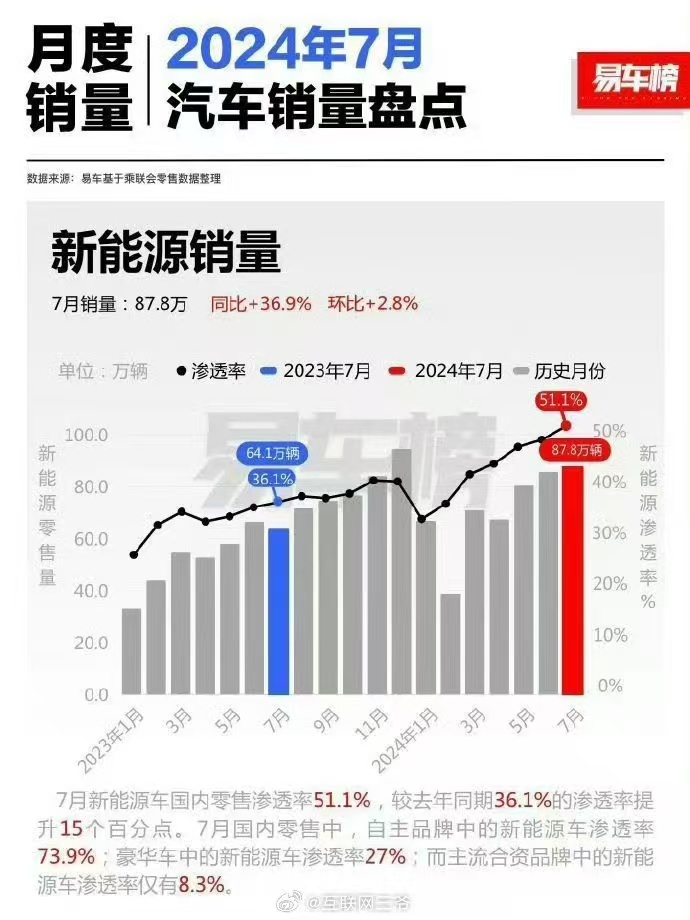 电车时代来临!7月新能源渗透率超 50%背后的意义