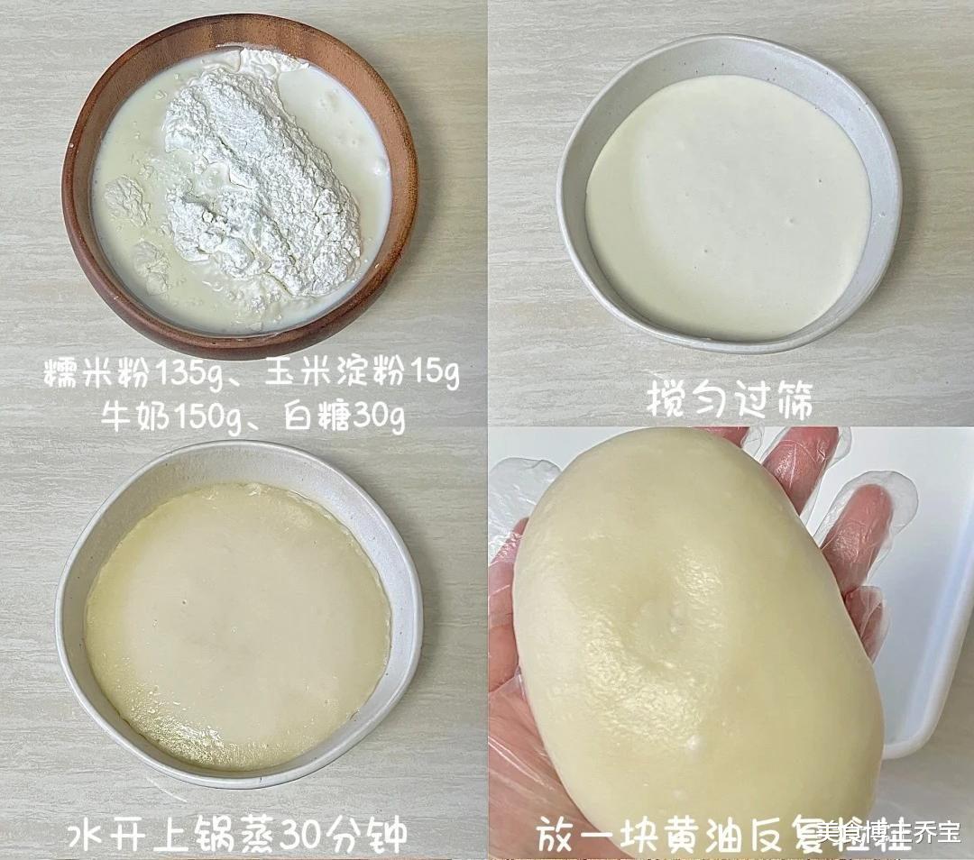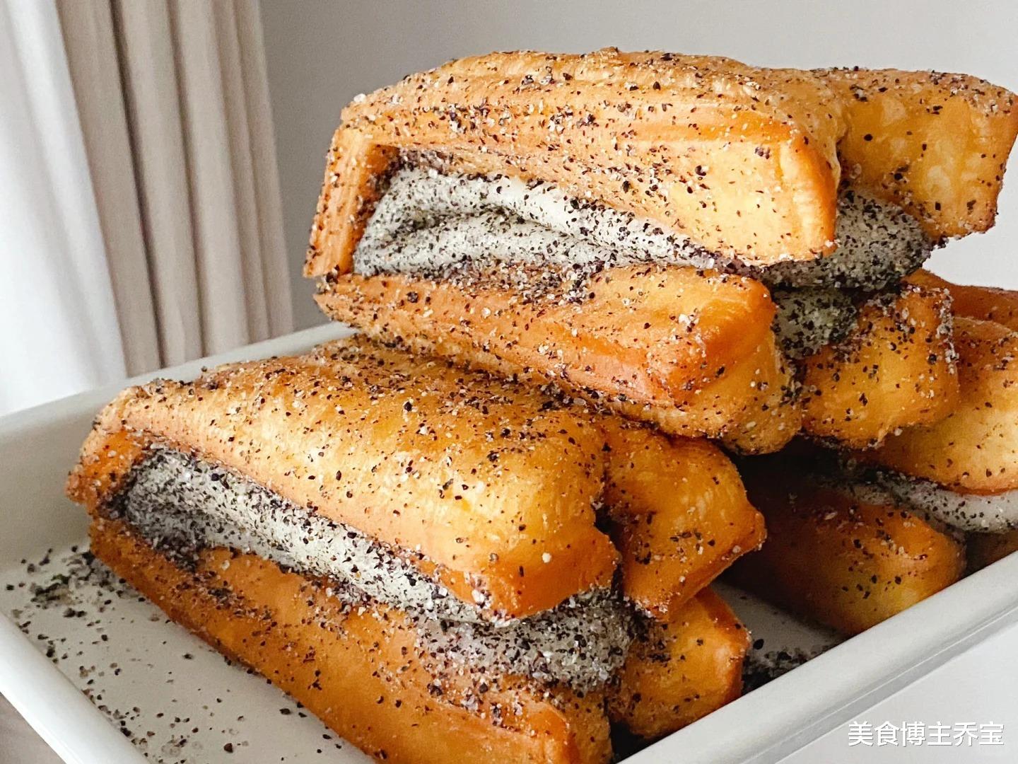 解锁油条的神仙吃法,Q弹的麻薯、酥脆的油条、再加上咸香的海苔肉松或者甜甜的白糖黑芝麻,口感丰富,在家轻松复刻。下面是油条包麻糍的制作过程: