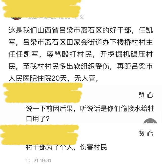 10月21日,网友爆料称山西省吕梁市一名村长开着挖掘机冲撞村民,场面非常惊险。