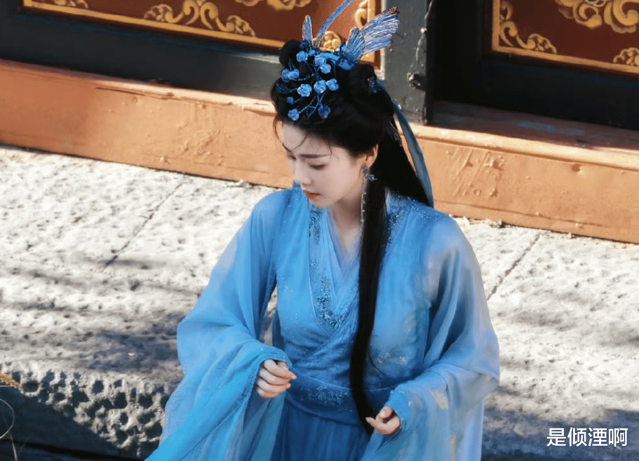 穿着蓝色纱衣的白鹿表情灵动,头发和服装的同色设计仙气十足,在低饱和度蓝色的衬托下,让肌肤本就白皙的李青月更加惊艳,整个人站在那儿如同莹白的瓷器在闪闪发光。难怪白鹿之前的应援口号是“牛奶皮肤白梦妍”,这样也不算是营销。