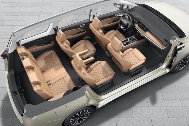 佳辰座椅布局为3排座2+2+3形式,未提供6座选项略显不足。第二排座椅可调前后及靠背角度,第三排支持比例放倒。后备厢容积可扩展至1177升,基础容积为395升。