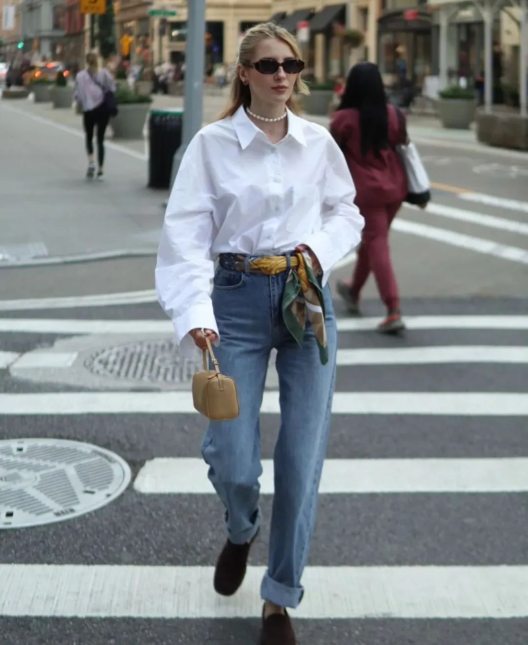 在日常穿搭中,一条简单的长条形丝巾就能为整体造型增添不少亮点。