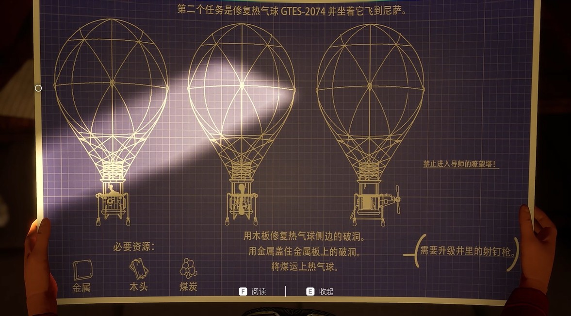 在寻找零部件的过程中,玩家面对的障碍大多都不难解决,坍塌的矿洞口不远处就能找到用来爆破的炸药;需要攀爬的高台附近总有用来垫脚的箱子。哪怕你一开始并没有意识到挡在面前的飞机残骸和不远处的废船有什么关系,但当你按照玩家的本能爬上去看看,往往就会明白其中的玄机。
