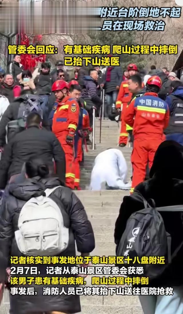 但依然还是会有人保不信邪。最近是春节假期,有人选择去泰山旅游,爬山就是必不可少的项目。有游客反映一男子在爬山的过程中突然摔倒后倒地不起,趴在了十八盘附近的台阶上。而且男子的身边也没有同行者,估计是一个人来的。
