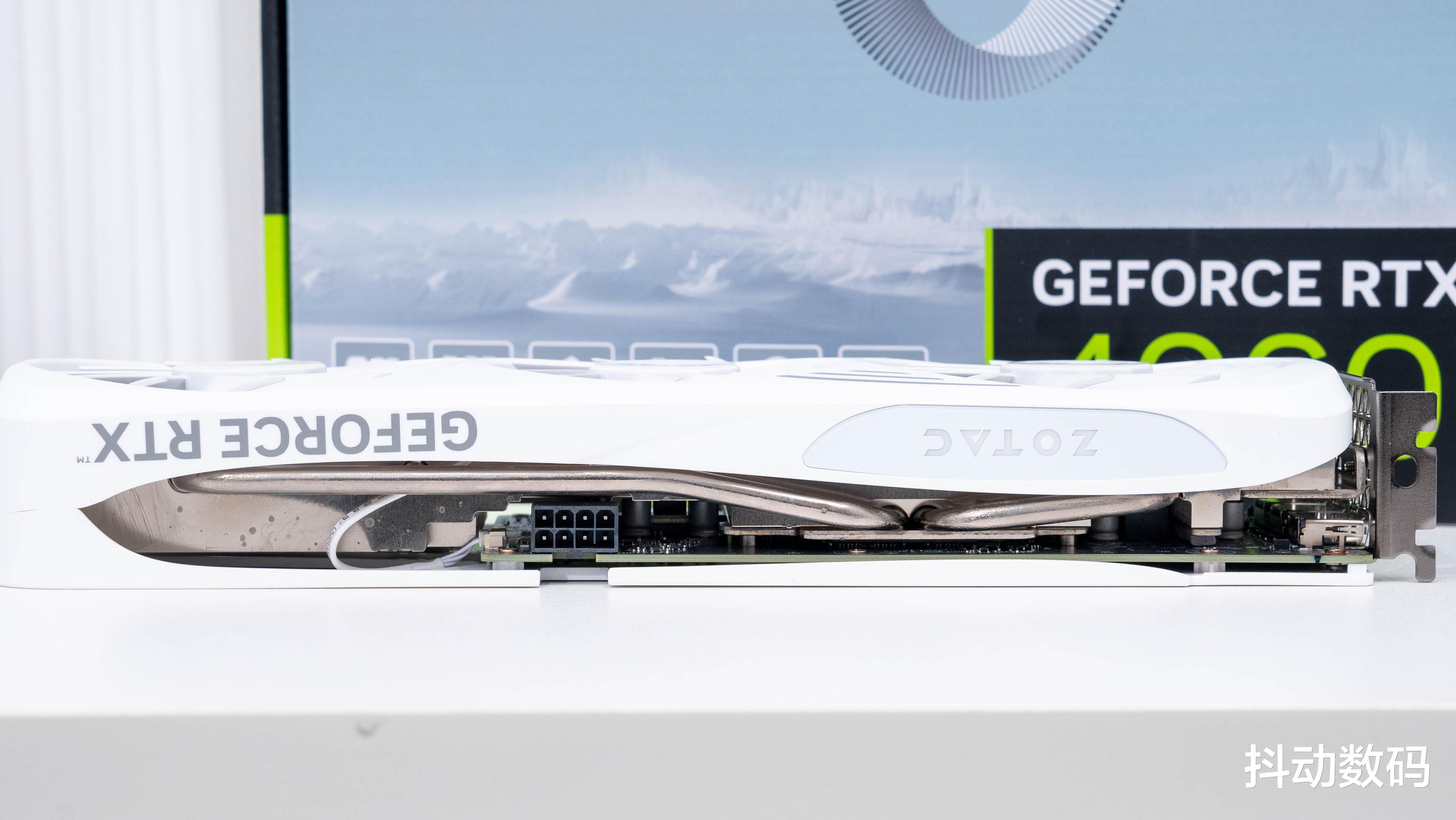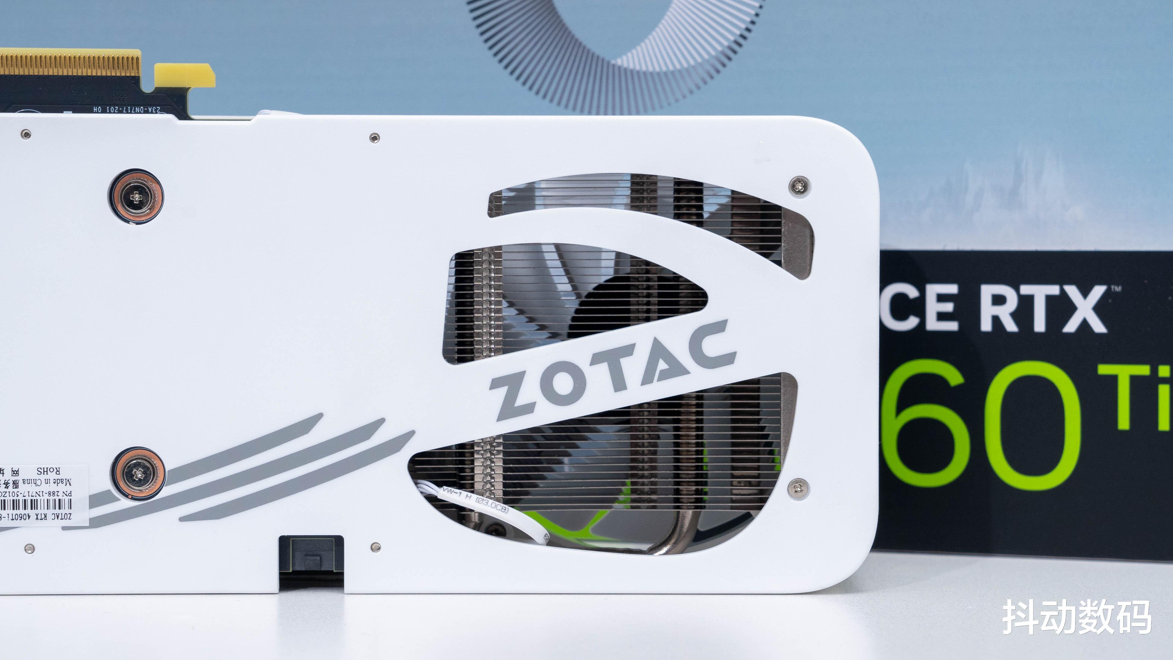 采用AD104-150核心的RTX 4060TI 月白GOC显卡采用白色的外观设计,外观设计延续了索泰月白系列的外观,三风扇设计的双槽厚度显卡。