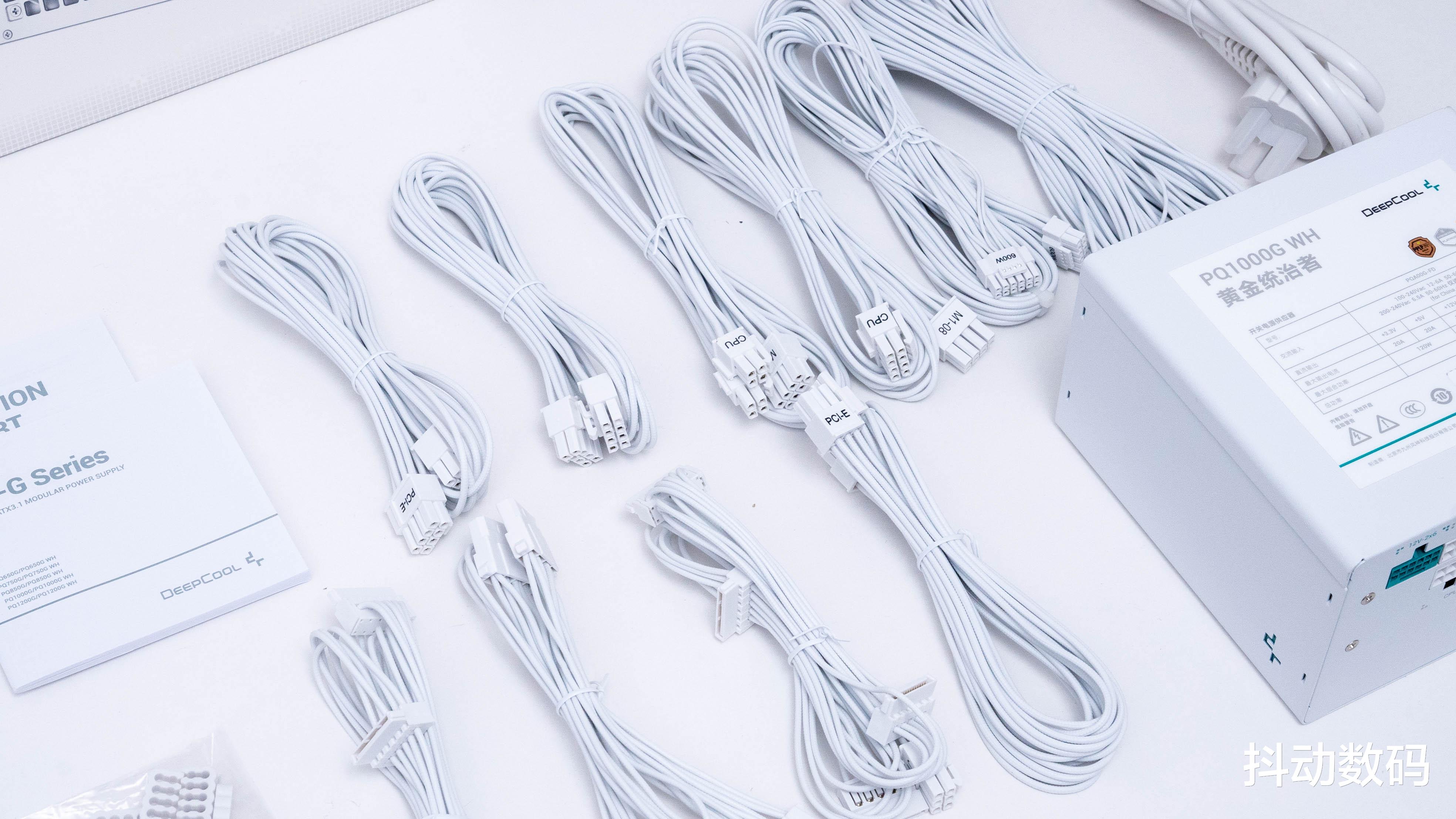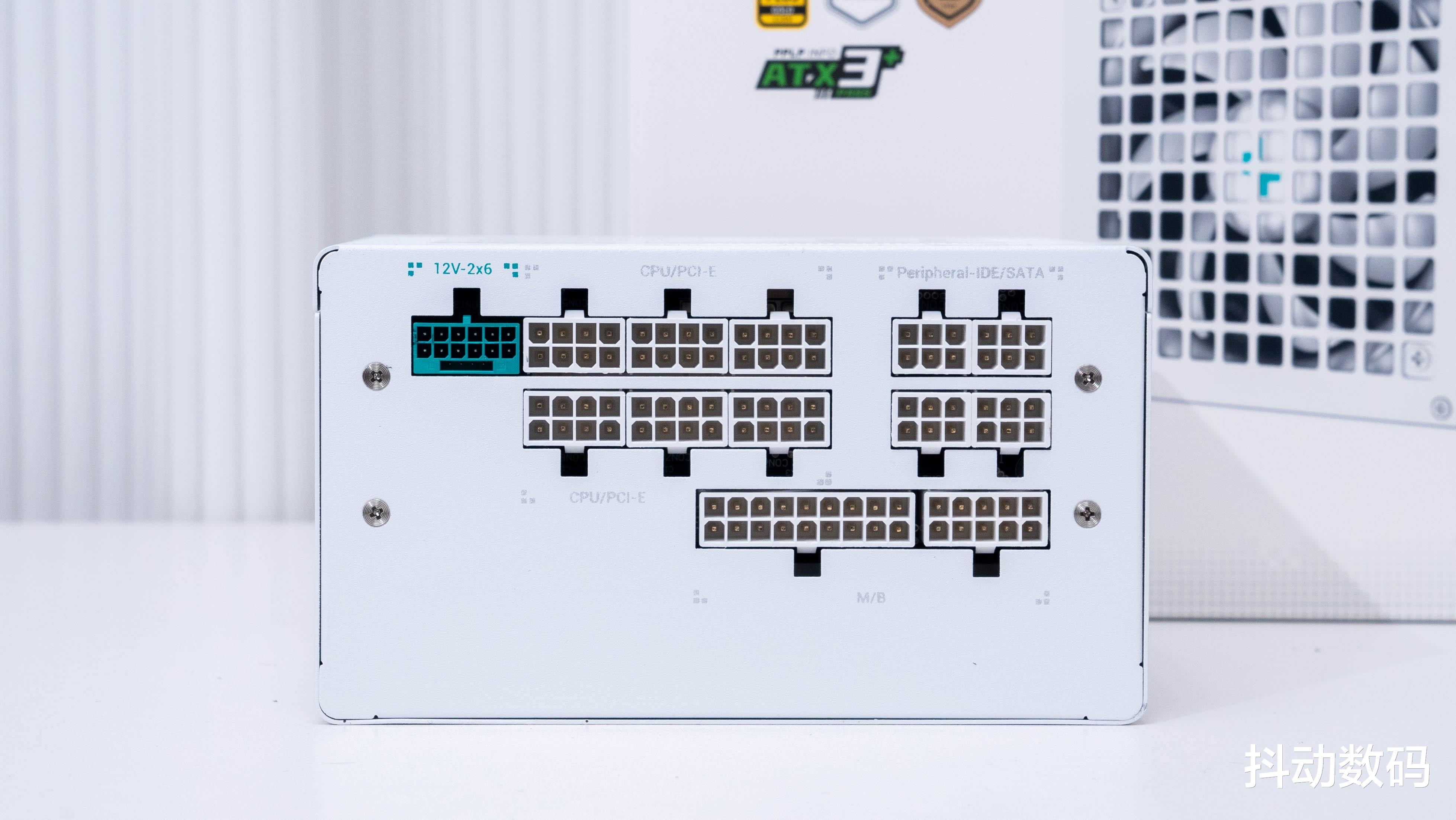 接口方面,除了PCIe 5.1的显卡供电接口之外,还提供了6个8Pin 12V输出的供电接口,四个6Pin的供电接口,可以说非常丰富了。标志性的九州风神配色的PCIe 5.1的显卡供电接口也是非常显眼,1000W的设计也满足下一代50系显卡的供电需要。