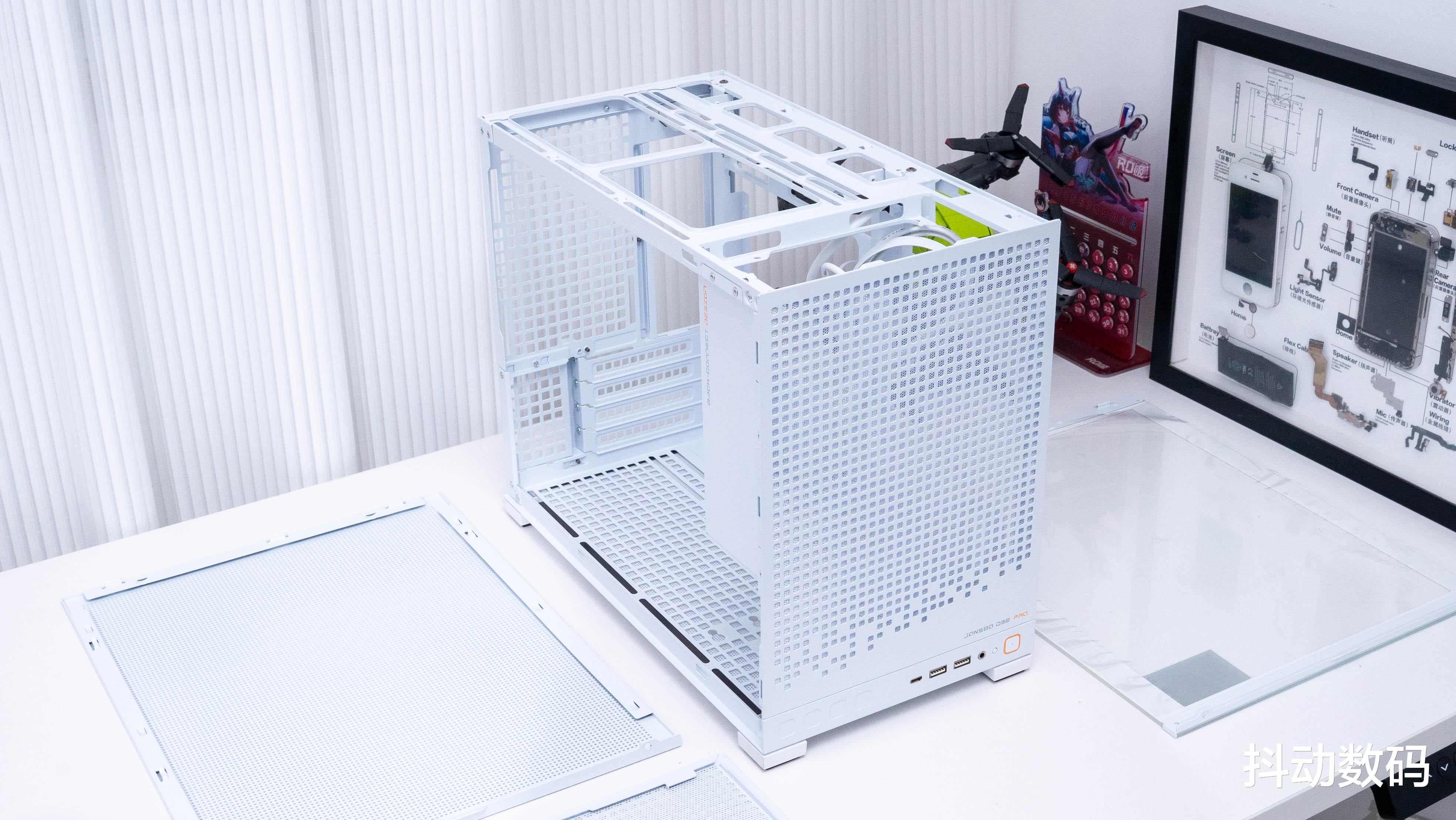 侧头设计,整体都是白色的外观,这款乔思伯机箱也考虑到电源前置后理线问题,设计了不少遮挡线材的地方,而且也可以兼容高性能硬件的配置组合。