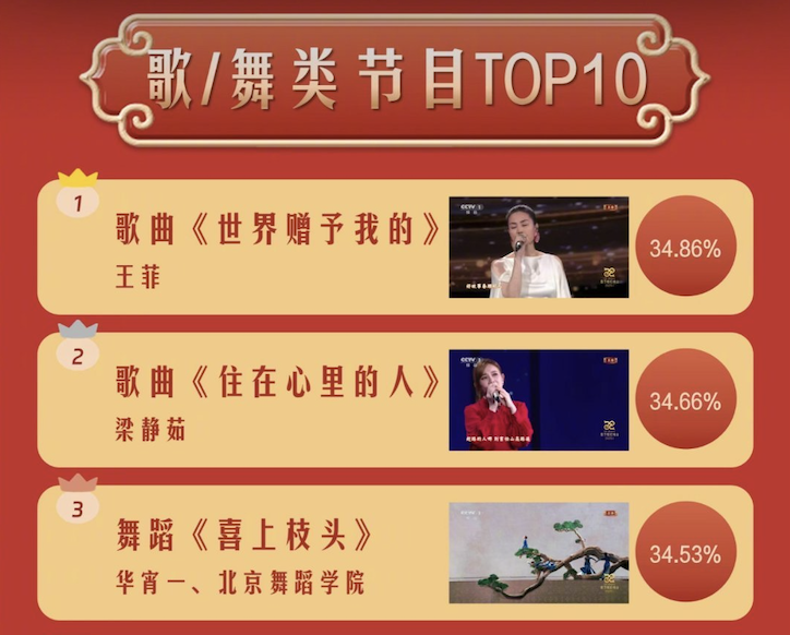 从春晚彩排路透出现了王菲的消息,就被广大网友关注到,甚至一度引发多个热搜,而王菲在最后一次彩排露面之后,更是引发了网络浪潮。王菲真的要再上春晚了!果不其然,春晚上的王菲唱了《世界赠予我的》,拿下蛇年春晚收视TOP1。
