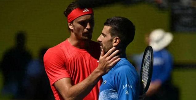 比赛刚开始时,德约科维奇就显得有些吃力。第一盘,他的左大腿缠着厚厚的绷带,明显的伤痛让他在场上动作变得迟缓。尽管如此,他依旧展现出了老辣的球技,在对阵兹维列夫时与对方你来我往,一度将比赛推向了白热化阶段。两人都拼尽全力,在发球和接发球上展开了精彩的对抗。