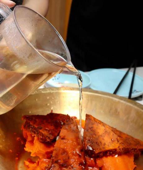 传统重庆火锅,用老鹰茶作汤底,滋味厚实,先涩后甘,滋味浓而杀口。矮冬瓜火锅保留以茶做汤底的传统,转而使用高山红茶,茶味隐在滚滚红汤中,似是绿叶与红花,衬托出锅底滋味,更加层次分明。