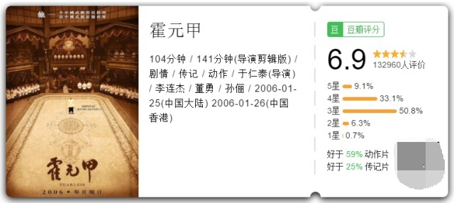 所以从电影制作团队上来讲,这样的阵容足够保证影片本身的质量,《霍元甲》绝对算得上是一部很成功的功夫电影。