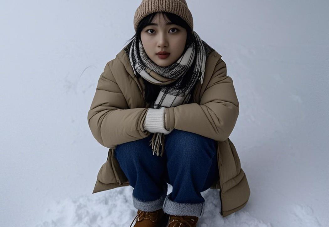 配饰:毛线帽(护住耳朵)+ 羊绒围巾(绕两圈挡风)