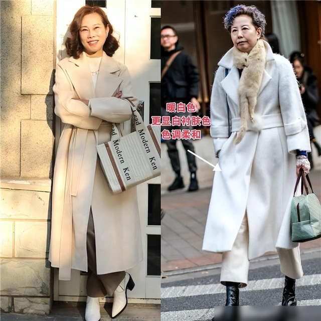 首先对于年长女性来说,尽量减少使用过于鲜艳的颜色,基础色本身就自带高级效果,再加上一些小搭配就不会这么容易给人感觉老了。
