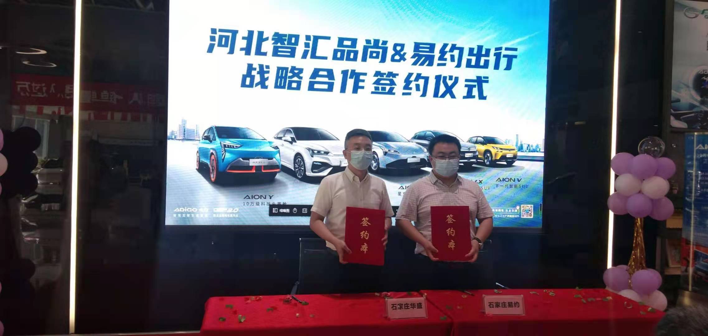 碧水蓝天 低碳生活 绿色出行 强强联手广汽埃安石家庄华盛,河北智汇品尚与易约出行签订战略合作协议 新媒体联盟讯(郝小学 李凤梅)为强强联手,整合资源,共促发展,8月14日,广汽埃安石家庄华盛总经理洪亮,河北智汇品尚总经理杨若朋分别和易约出行总经理张晓康签定了战略合作协议。标志着新能源汽车全面进军河北网约车市场。