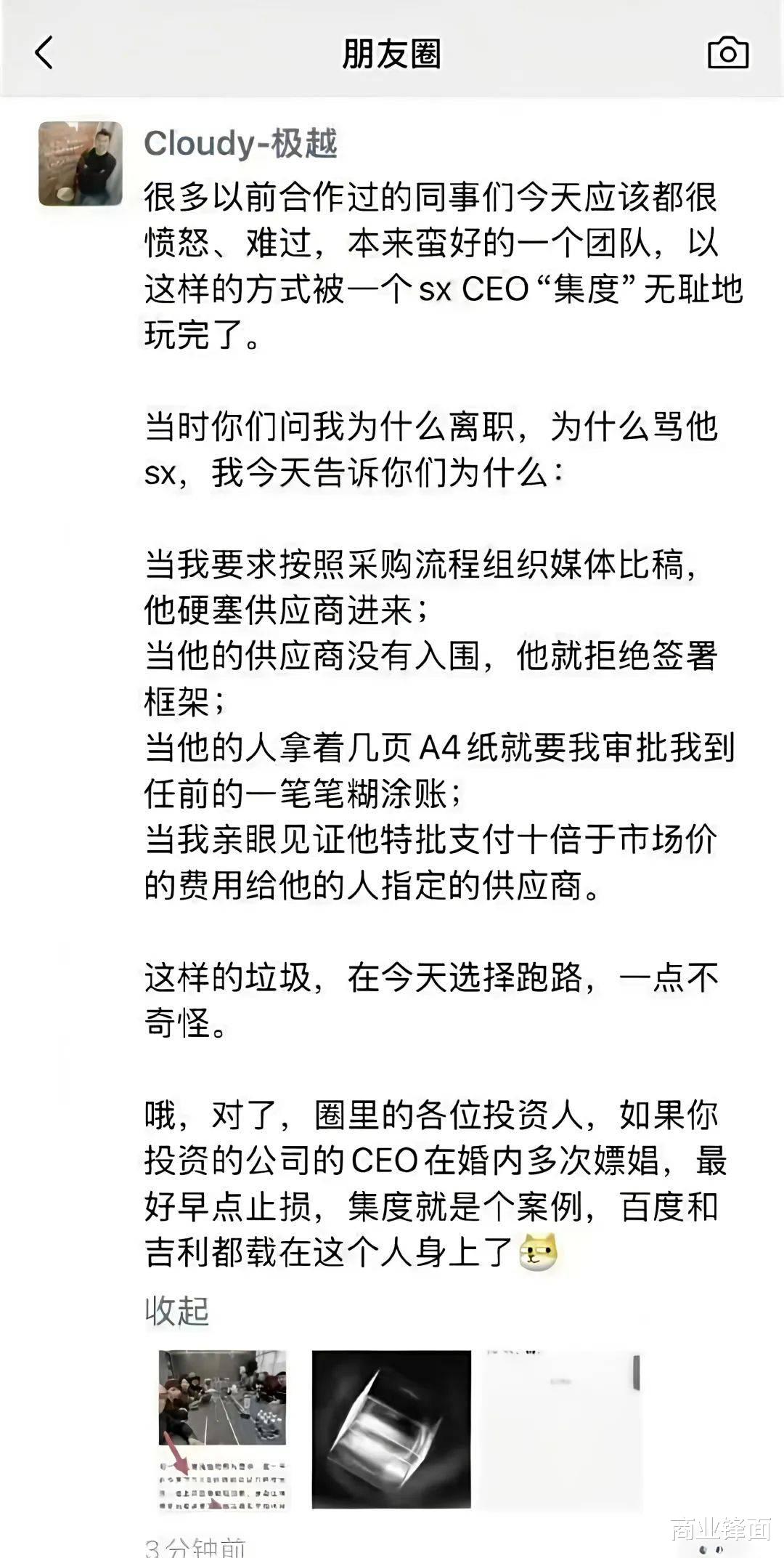 有员工、供应商在社交媒体上爆料,极越CEO夏一平将家属移民海外、涉嫌贪腐问题、利用供应链谋私利,整个管理团队花钱太快等传言。