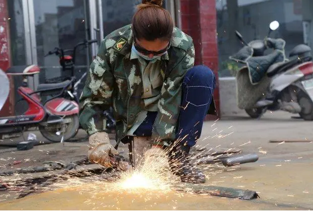 只见一个女孩穿着工作服,手持电焊正在焊接钢铁,她的动作非常娴熟,而她本人也长得十分标致美丽。
