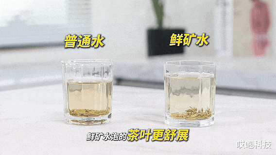 例如在冲泡绿茶时,可以看到矿物水泡的茶叶更舒展,茶汤清亮,喝起来也感觉更清香醇厚;