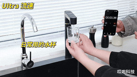 再用计时来直观看下这么一杯水,只需要不到 3 秒就可以接满,这流速是真的快啊。