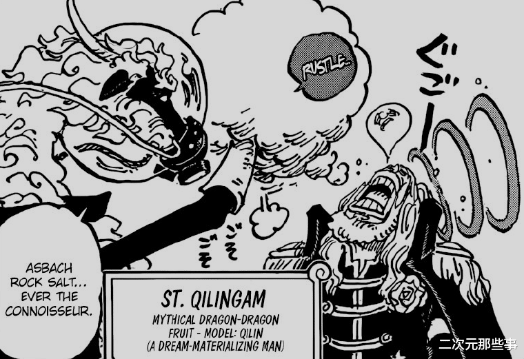 而在这一话更新后,剧情中的一个设定引起了不少读者的讨论,甚至还有人表示不理解尾田的逻辑,这个设定就是麒麟圣的果实名字“龙龙果实”幻兽种“麒麟形态”。麒麟是龙龙果实还能理解一下,毕竟神话中麒麟就是龙的孙子,应龙生建马,建马再生麒麟,也有说麒麟是龙和牛交配生出来的。