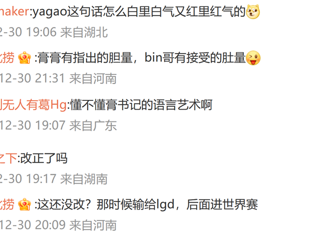以前造梗的都是TES战队,没想到今年就轮到BLG,轮到yagao和bin了。可惜他们没有同队,我感觉yagao这番话说得没错,打成这样对不起自己的高年薪,对不起队友。但是这话算不上“重话”,可能bin以前被大家捧着,没人吐槽过他,选手才会这样想吧。