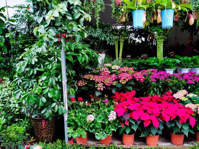 (3) 枝叶小而较茂密的多属于喜阴性花卉,如文竹、天门冬、南天竹等;枝叶较稀疏而又伸展的,大部分属于喜阳性花卉,如一串红、三色堇、彩叶草、夹竹桃、茉莉等。