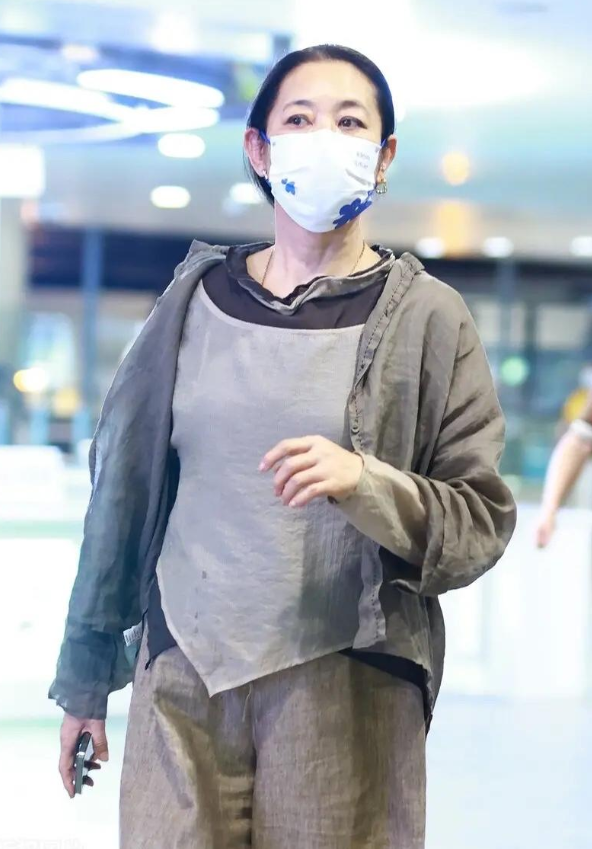 倪萍选择灰色亚麻开衫+浅灰色不规则内搭+灰色宽腿裤,通过不同灰度的单品,营造层次感,使整体造型更加丰富立体,摆脱了一身灰给人的普通感。日常在打造同色系造型时候,我们也可以尝试挑选运用不同深浅的同色单品,来营造层次感,使穿搭更加有趣。