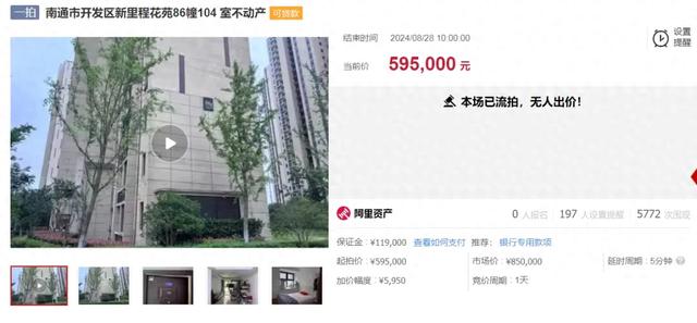 开发区能达板块次新房——绿地新里城,一套建面约95㎡的高层房源,起拍总价仅59.5万,起拍单价仅约6287元/㎡,即便价格低到如此地步,依旧无人问津惨遭流拍。