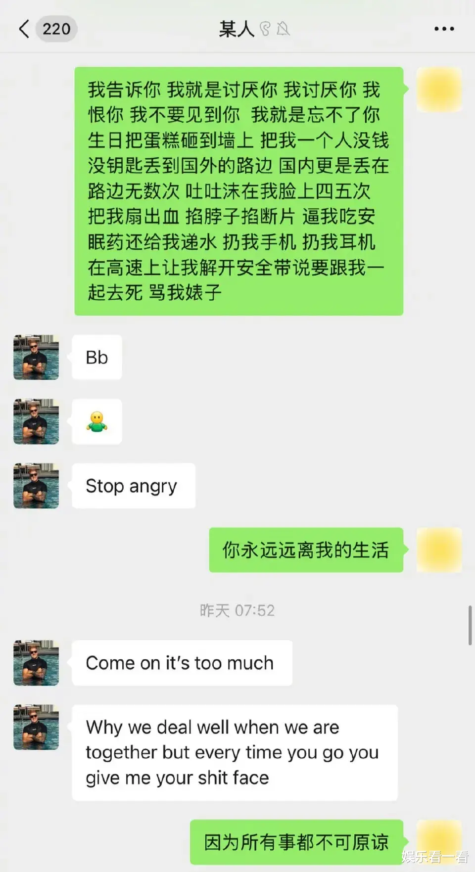 除了身体上的暴力,毛子还长期对玫瑰进行精神操控(PUA)。