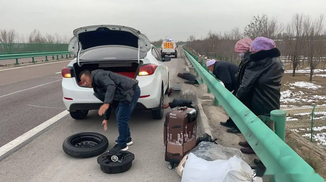 3、那车上人员就原地看着你换备胎吗?当然不行,在车辆停稳后,车上人员一定要到护栏外进行警戒,有失控车辆驶来时,赶紧通知更换备胎人员紧急避险。