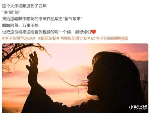 直到最近一年,关于李子柒的消息才逐渐多了起来,就任东源木活字印刷文化研究院的传播大使,今年7月份站在“成都古蜀蜀锦研究所”门口,与研究人员合影。