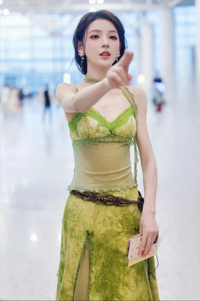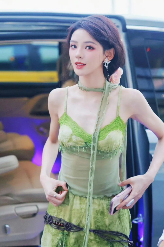 而说到张予曦的性感魅力,就不得不提她那一次穿清新果绿透明小吊带的造型。那一抹果绿色,不仅衬托出她白皙的肌肤,更突显了她骨感且有曲线的身材。
