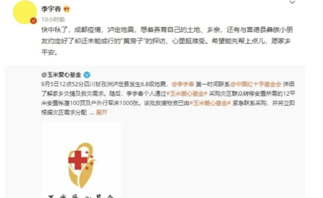韩红基金会也在9月6日积极行动,通过对灾情的判断,最终决定向泸定县和雅安市各捐赠人民币200万元。