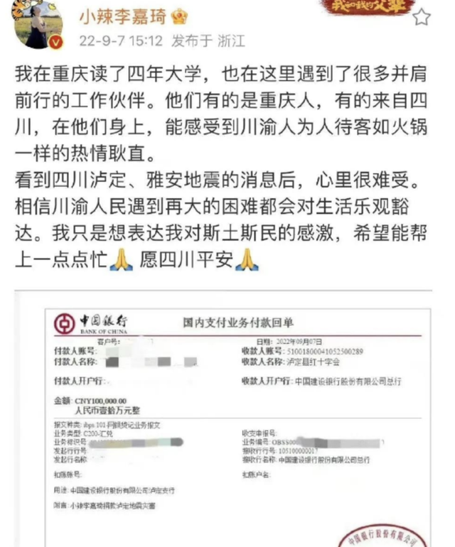 备受争议的网红辛巴捐款500万,还有改回本名李嘉琦的辣木样子,捐款10万引起了争议,网友们误以为是带货一哥李佳琦。