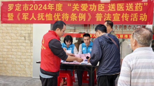近日,罗定市退役军人事务局联合肇庆市复退军人医院在太平镇举办2024年度“关爱功臣 送医送药”暨《军人抚恤优待条例》普法宣传活动,为当地的烈属、老复员军人、残疾军人等优抚对象提供送医送药及普法宣传服务,大力弘扬拥军优属的优良传统,扎实推进优抚政策落地见效。