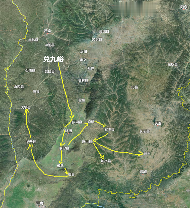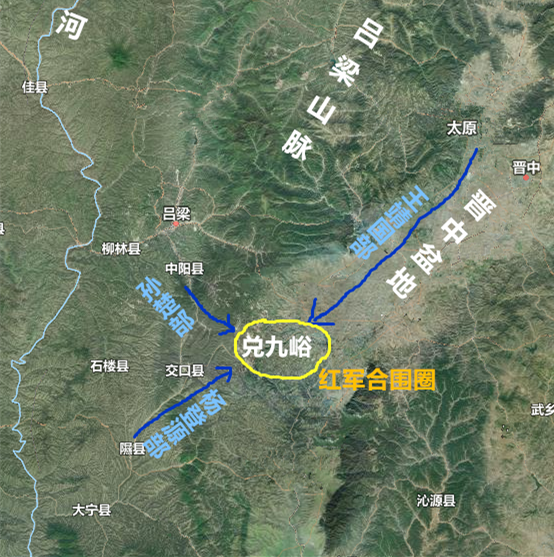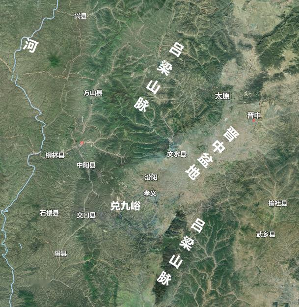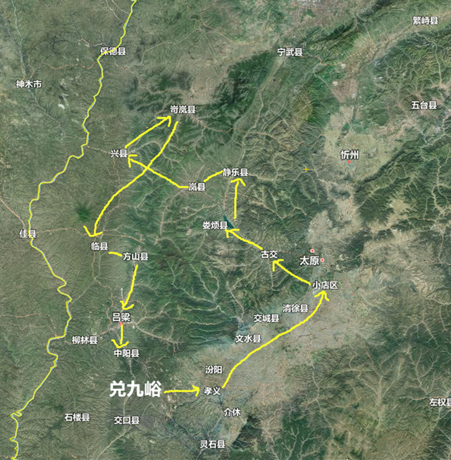 好了,闲话少叙。兑九峪除了是一块资源丰富的宝地外,他还是从吕梁山区进入晋中盆地的西大门,战略位置十分重要。如下图