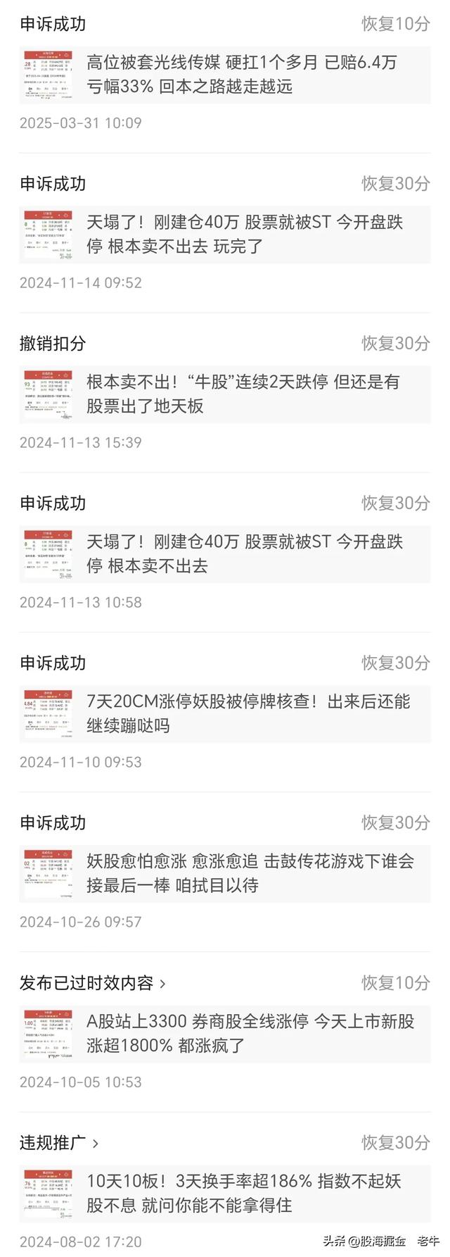 再来说信用分被扣,也不必惊慌,只要你的内容不是抄袭,搬运洗稿或者AI以及涉及违规推广的,那你只要找出问题的,精准点,正常申诉一般都会恢复信用分,去年11月份就多次遭遇连续被扣30分的情况,11月13日,更是一天被扣了两次,经过申诉都被恢复了,有一次申诉未通过,经过人工客服的介入也恢复正常了。