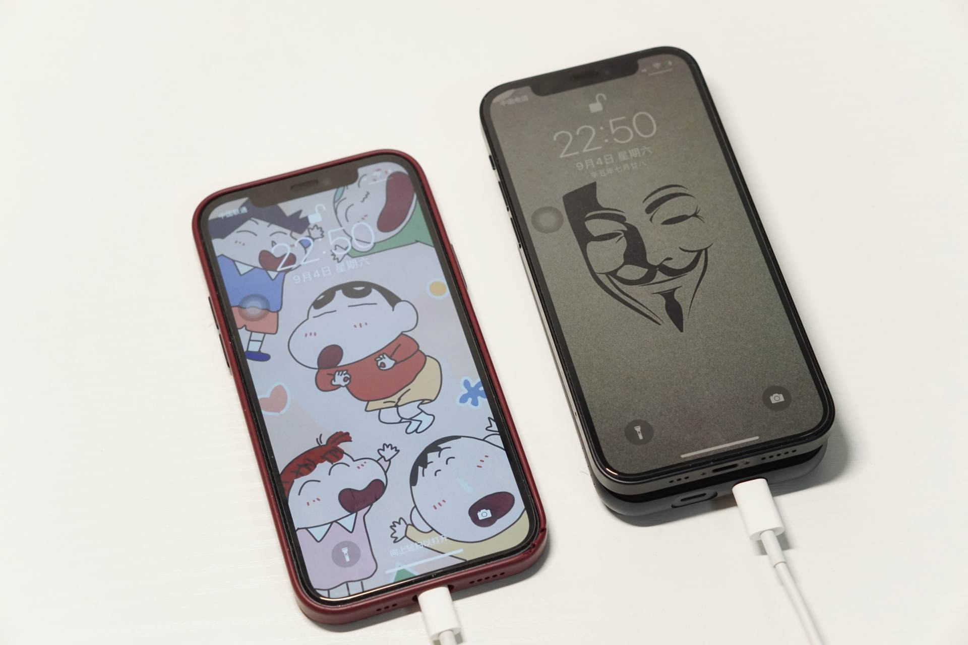 ▼与iPhone12放在一起来看看,边框几乎和12保持一致,放在12背面正好融为一体