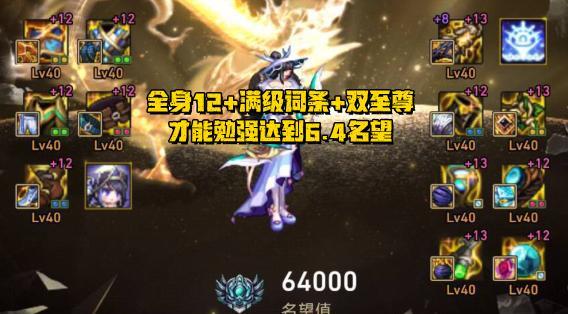 如果想要达到6.4名望,那么最起码需要「全身红12+满级词条+完美附魔+双至尊+完美贴膜」!